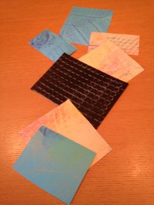 Quest’anno ho letto per loro con il kamishibai e poi ogni bambino ha relaizzato un piccolo kamishibai di cartoncino, colorandolo con la tecnica del frottage con i pastelli a cera.
